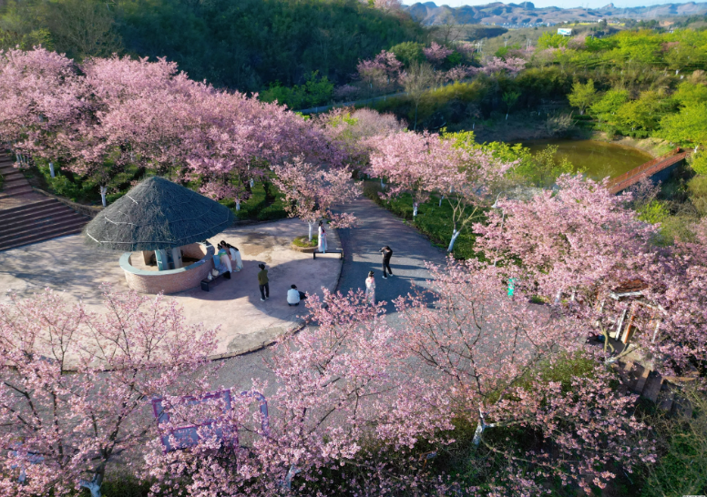 About 1,000 cherry trees are blooming in the cherry blossom park of Gaoyi Ridge Scenic Area.