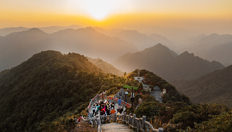 Photos show golden rays of sunlight spread across the mountain peaks in the Mangshan National Forest Park of Chenzhou.