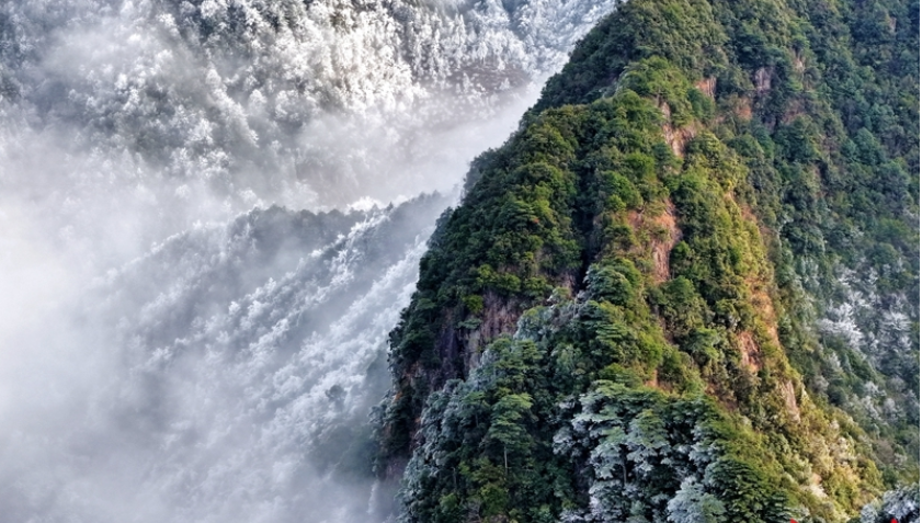 Huilong Mountain Scenic Area welcomed the stunning rime scenery and sea of clouds on January 3.