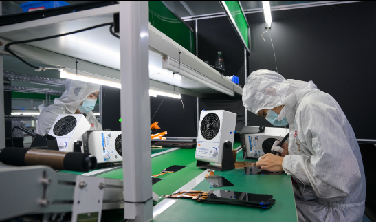 Workers were using professional automated equipment to fulfill orders in the production workshop of Hunan Caixian Technology Company, Chenzhou High-tech Zone.