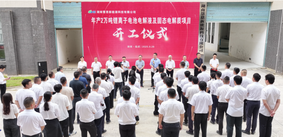 Hunan Huien New Energy Technology Company held a groundbreaking ceremony for the lithium-ion battery electrolyte and solid electrolyte project with an annual production of 20,000 tons on September 28.