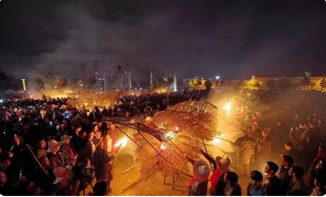 The Burning incense dragon dance is a folk entertainment activity held specifically during the Lantern Festival.