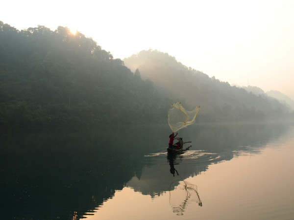 All travelers who visit Dongjiag Lake are impressed with its clear water, vast lake surface, green mountains, and different shapes of islands. We visited there