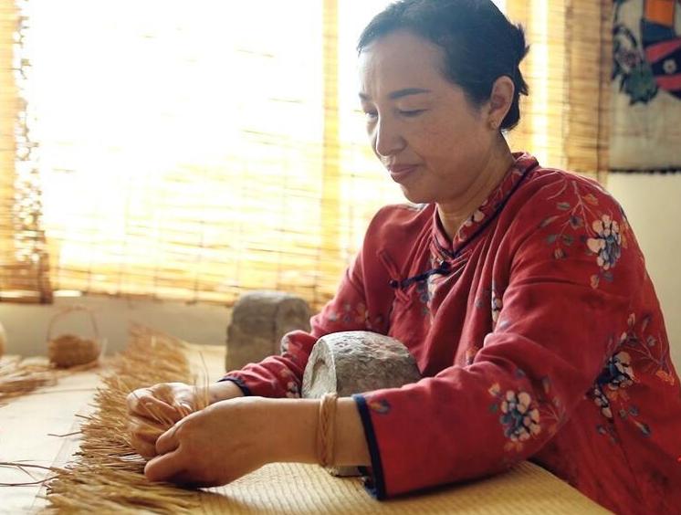 Hu Xiaoqin is an inheritor of the rush mat weaving skill, an intangible cultural heritage item.