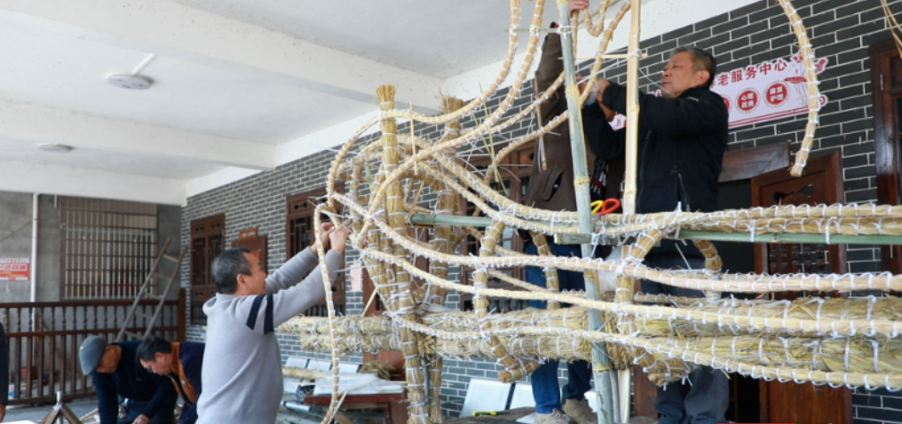 Local villagers in Rucheng County of Chenzhou City are busy making burning incense dragons.