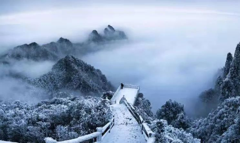 It is a good choice for tourists to visit the Mangshan Mountain in Chenzhou City to enjoy the splendid scenery of ice and snow, sea of clouds and rime.